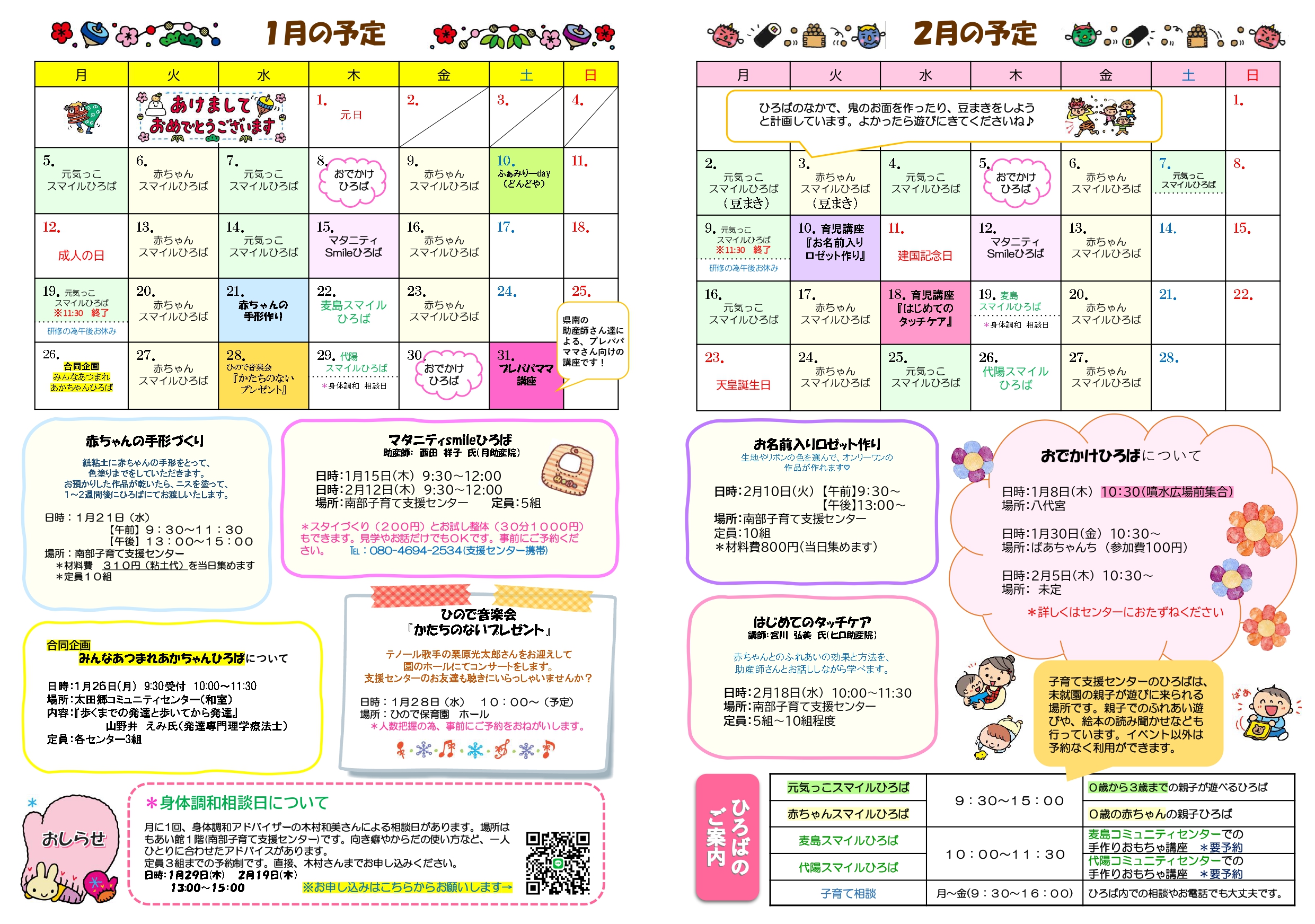 お気軽に支援センターに遊びに来てください。一人で来られない子育て中の方もお電話ください
